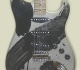 それがアートになるか、或いはかっこいいか、は別としてギターボディに塗料で普通に文字を書する事はたやすい。だから私が手がける限り、他の誰も制作出来ないものを目指したい。そこで取り組んだのが墨のマチエールだけの黒いボディ。